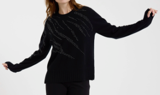 Brodie Hot Fix Zebra Hoodie - Elevate your evening wardrobe with this elegant Hot Fix Zebra Crew Neck Jumper in classic black, crafted from 100% pure cashmere for unmatched comfort and style.
