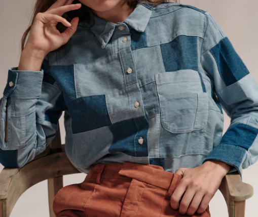 CISSA The Belle, Indigo - A carefree interpretation of the classic shirt, in 100% denim. Relaxed fit. Front single pocket, two knife pleats at back yoke. Button cuffs. High-low shirt tail hemline.