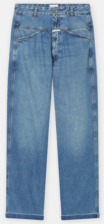 Closed Deni-X - The Deni-X blends heritage with modern style, featuring a relaxed low-crotch silhouette. This denim (12 oz.) showcases detailed whiskering and salt 'n pepper effects. With signature X-pockets and recycled cotton content, it combines classic design with sustainability.