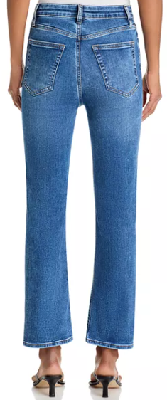 - Zip fly with button closure, five-pocket silhouette