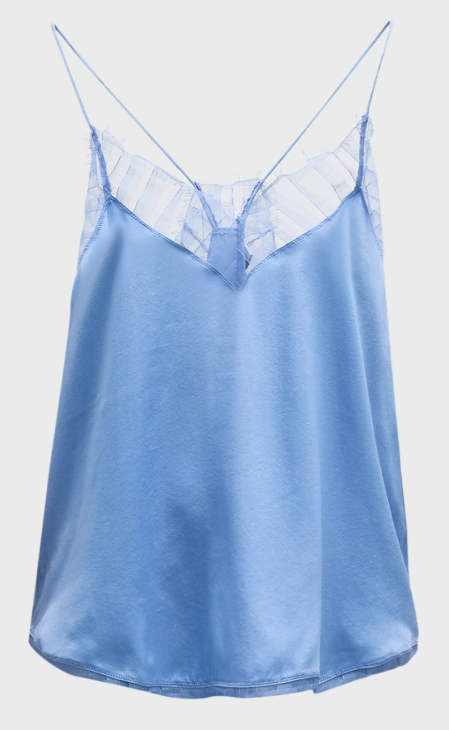 - Iro "Berwyn" camisole in silk sateen with frayed organza trim.