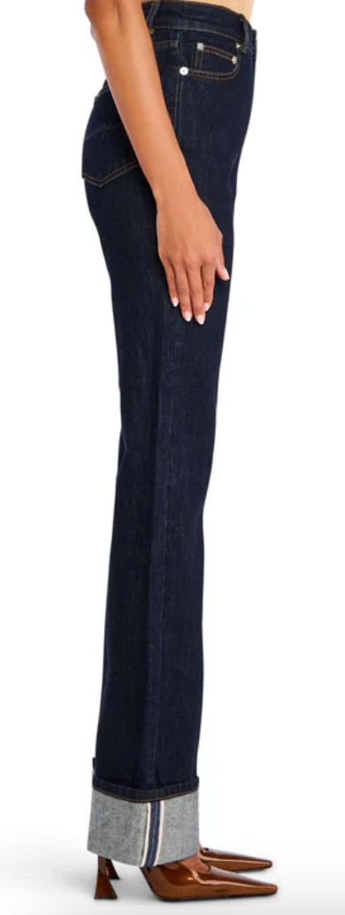 SER.O.YA Ashton High Rise Slim Flare Jean - High rise dark wash denim, with a slim fit. Slightly flared leg and adjustable cuffed hem.