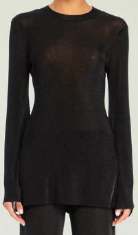 SER.O.YA Ines Top - Long sleeve, longline top in a semi-sheer metallic knit fabrication. Pair with the Sheldon Metallic Knit Pant to complete the look. Shown here in Black.