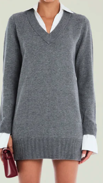 SER.O.YA Karli Dress - Knit, mini dress with removable cuffs and collar. Shown here in Medium Grey.