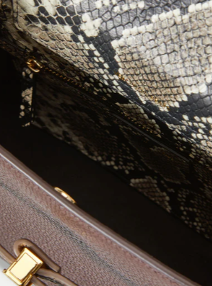Veronica Beard Colorblk Veronica Beard Dash T - Black Multi - The Dash you know and love—now in a fresh new shape. Crafted from black pebbled leather, the updated Dash silhouette features a structured top handle, a slightly taller body for added capacity, and a tan suede full-flap magnetic closure to keep your essentials secure. Along with our signature adjustable belted strap—in statement python-embossed leather—it includes a removable, adjustable shoulder strap for maximum versatility and an interior zip pocket for easy organization.